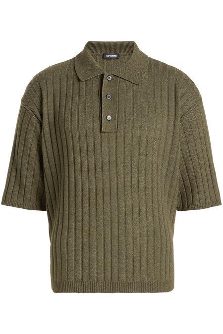 Raf Simons Ribbed Polo Shirt With Cotton And Wool In Green Modesens