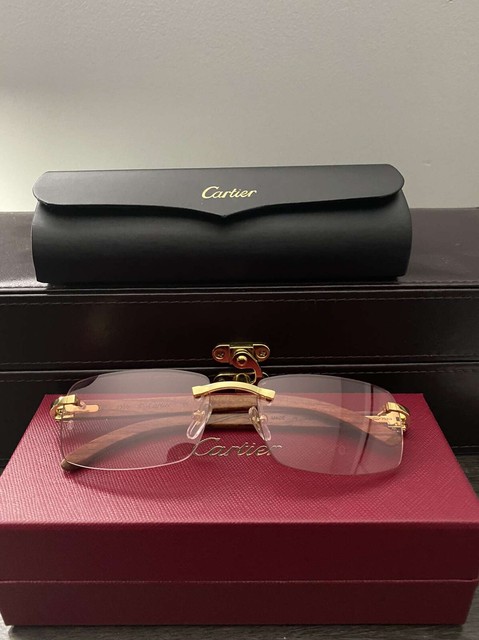 Cartier Sunglasses Wood Engraved Antigua Rimless T8300712 Rare 895 For Sale Online Ebay